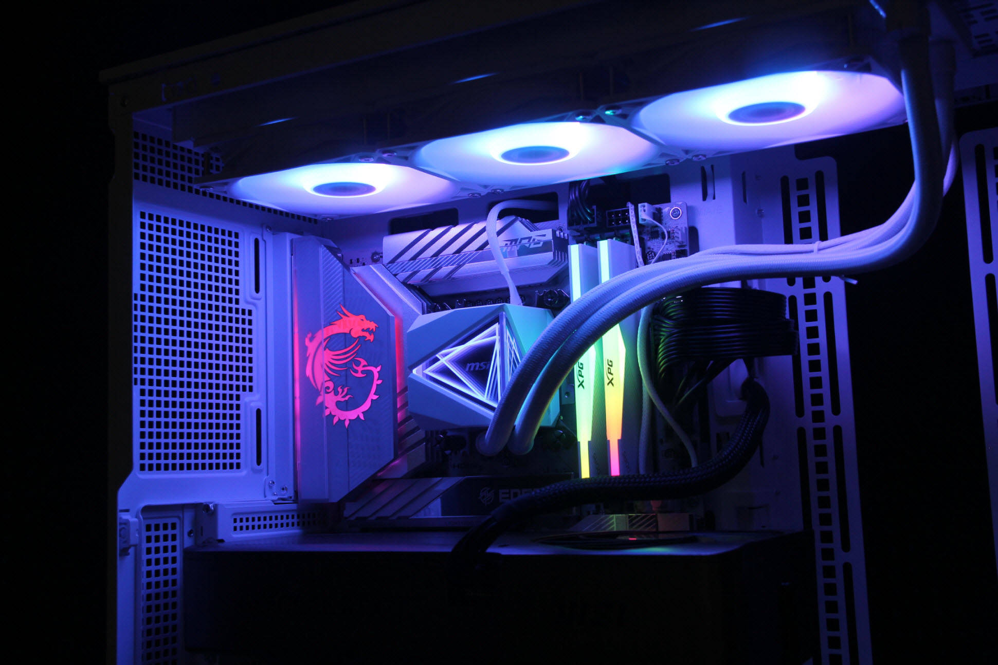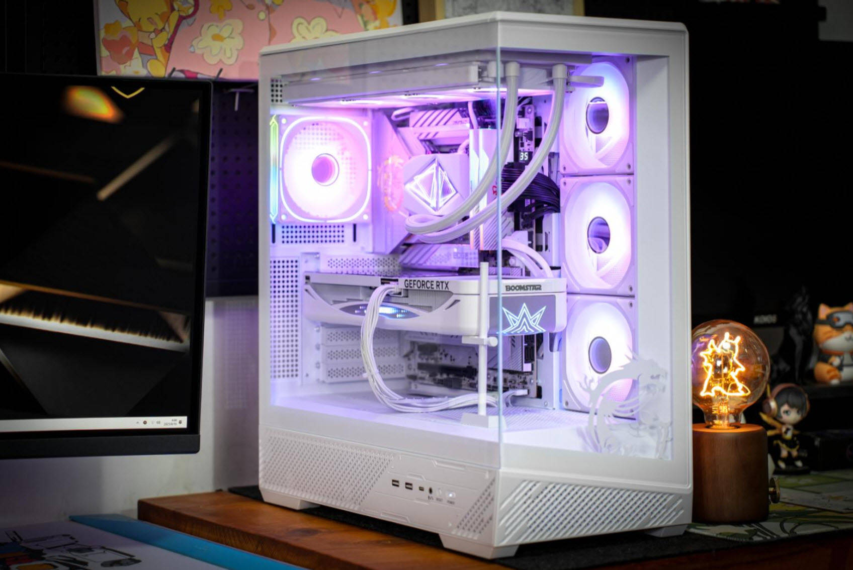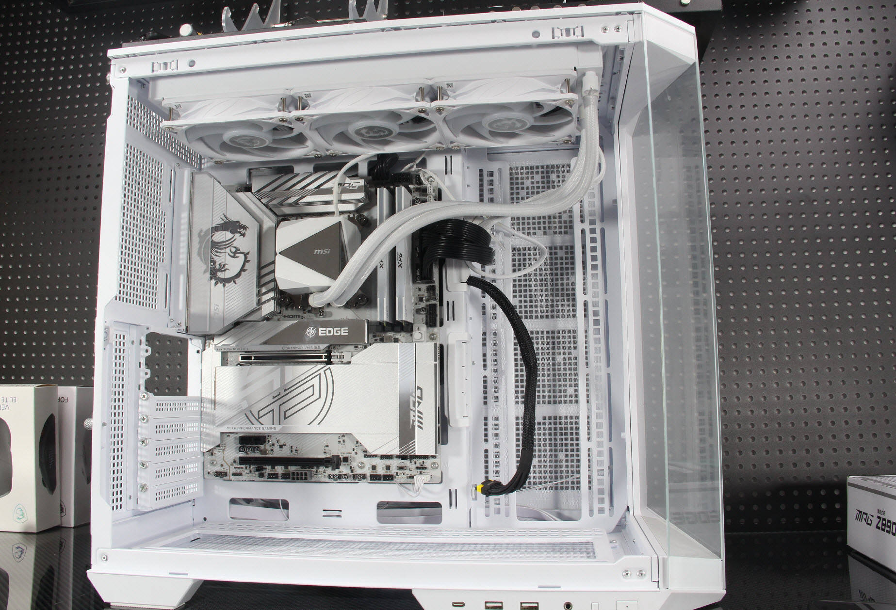 1、白色主题爱好者:纯白PCB搭配银色散热装甲,为打造白色或浅色系的海景房主机提供了完美解决方案。搭配微星MAG PANO 131L PZ机箱和MPG CoreLiquid P13水冷散热器,可以实现270°全景展示的高性能平台。