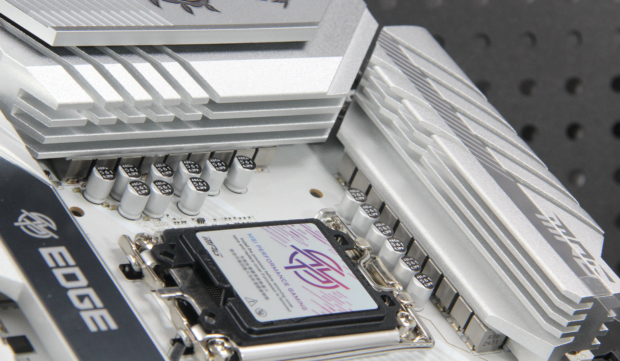 散热设计上,微星MPG Z890 EDGE Ti WIFI刀锋钛主板采用银色扩展型VRM散热装甲,内部配备导热热管和7W/mK的高品质MOSFET导热垫,确保处理器在高负荷运行时保持低温稳定。主板还采用了8层2盎司铜服务器级PCB设计,提升电气性能和抗弯折能力。