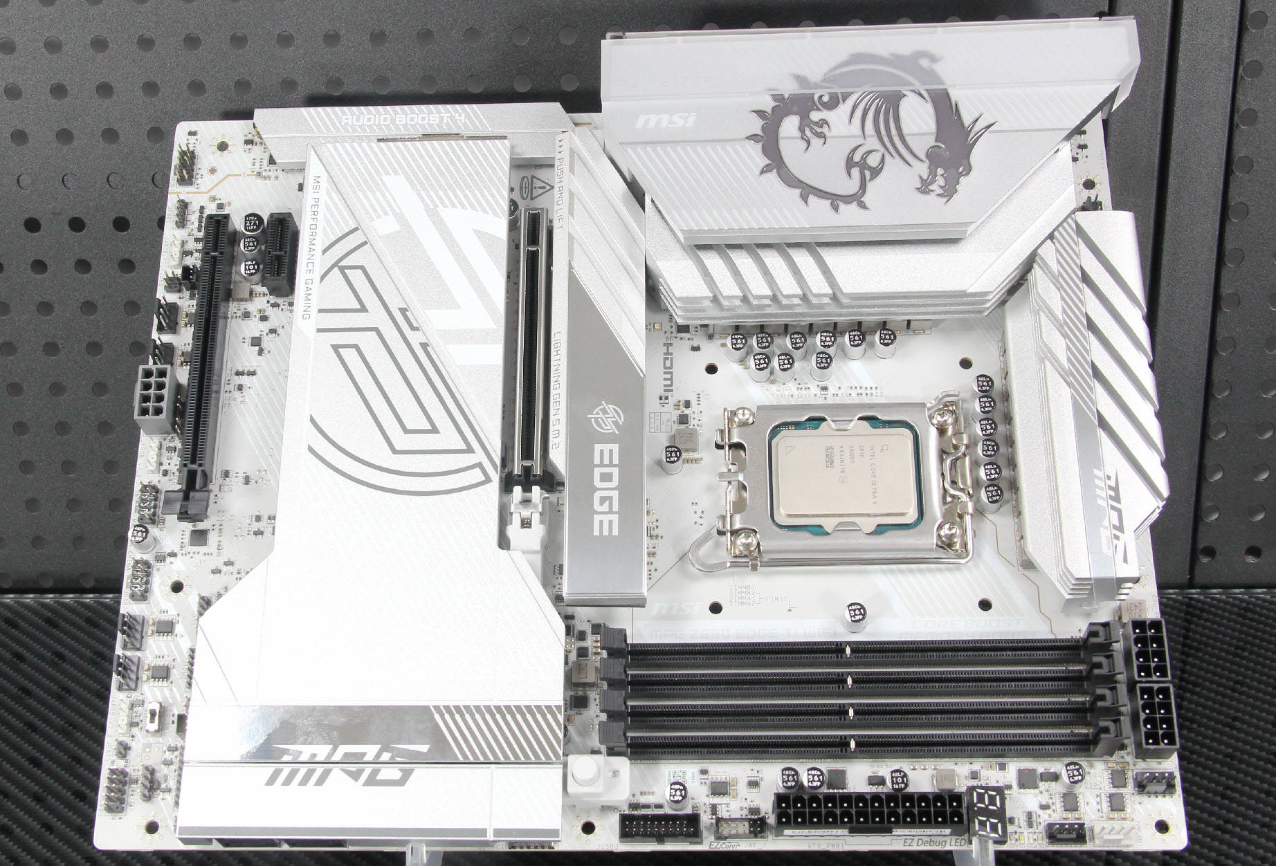 微星MPG Z890 EDGE Ti WIFI刀锋钛主板采用了全新的设计语言,纯白PCB搭配大面积银白色散热装甲,通过磨砂、镜面高亮、斜纹切割纹理等多元素工艺堆砌,实现了视觉效果的全面提升。与以往刀锋钛产品相比,这一代主板在外观上更加精致,同时在性能上也实现了质的飞跃。