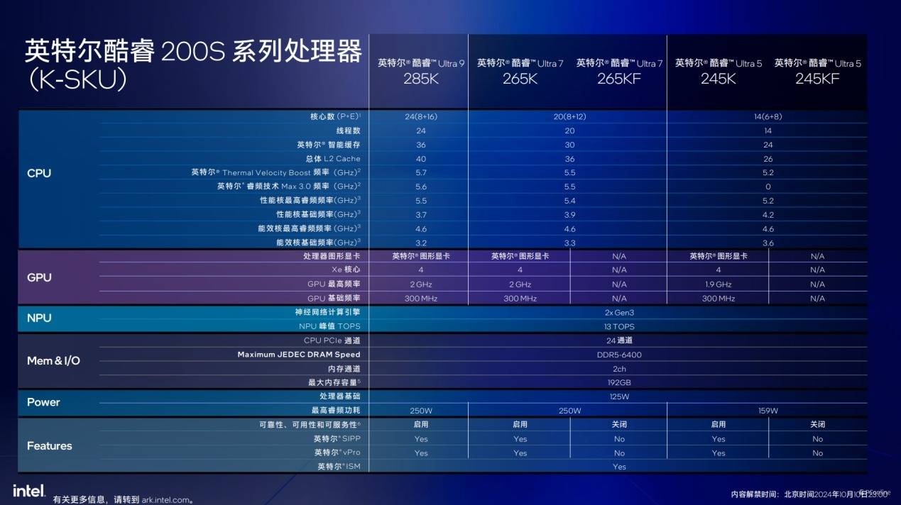 2024年10月24日,intel正式发布酷睿Ultra 200S系列处理器,代号Arrow Lake,标志着AI计算正式登陆桌面平台。这是Intel首次为台式机处理器引入NPU(神经网络处理器),将AI特性扩展至桌面PC领域。