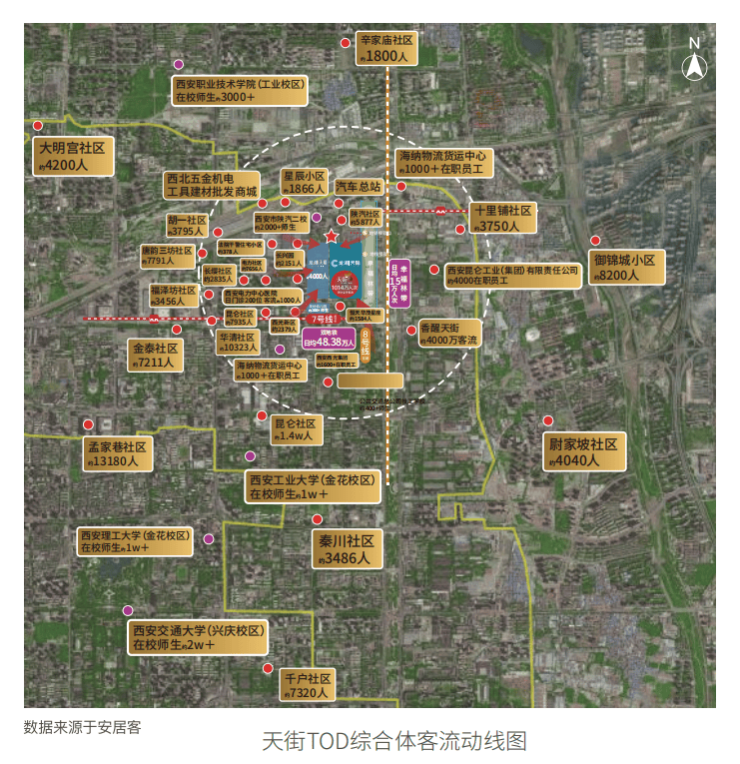 龙湖天曜社区超1000户(约4000人口)+未来天街预计约13000办公人群+天街约4000名工作人员,总计超20000常驻人口,稳定消费保障。