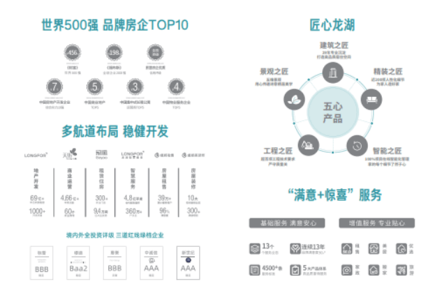 龙湖集团,《财富》世界500强第456位、《福布斯》全球企业2000强第198位、中国房地产TOP10、中国商业地产TOP5、中国物业服务TOP5、三道红线载发展,龙湖集团正成长为全球领先的空间营造及服务企业。