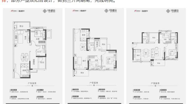 项目户型设计合理,面积段为刚需的 65 - 105㎡,提供 2 - 4 房多样化选择。户型方正通透,使用空间大,部分户型采用双阳台设计,且做到三开间朝南,室内光线明亮,居住舒适度较高。售楼处电线 。